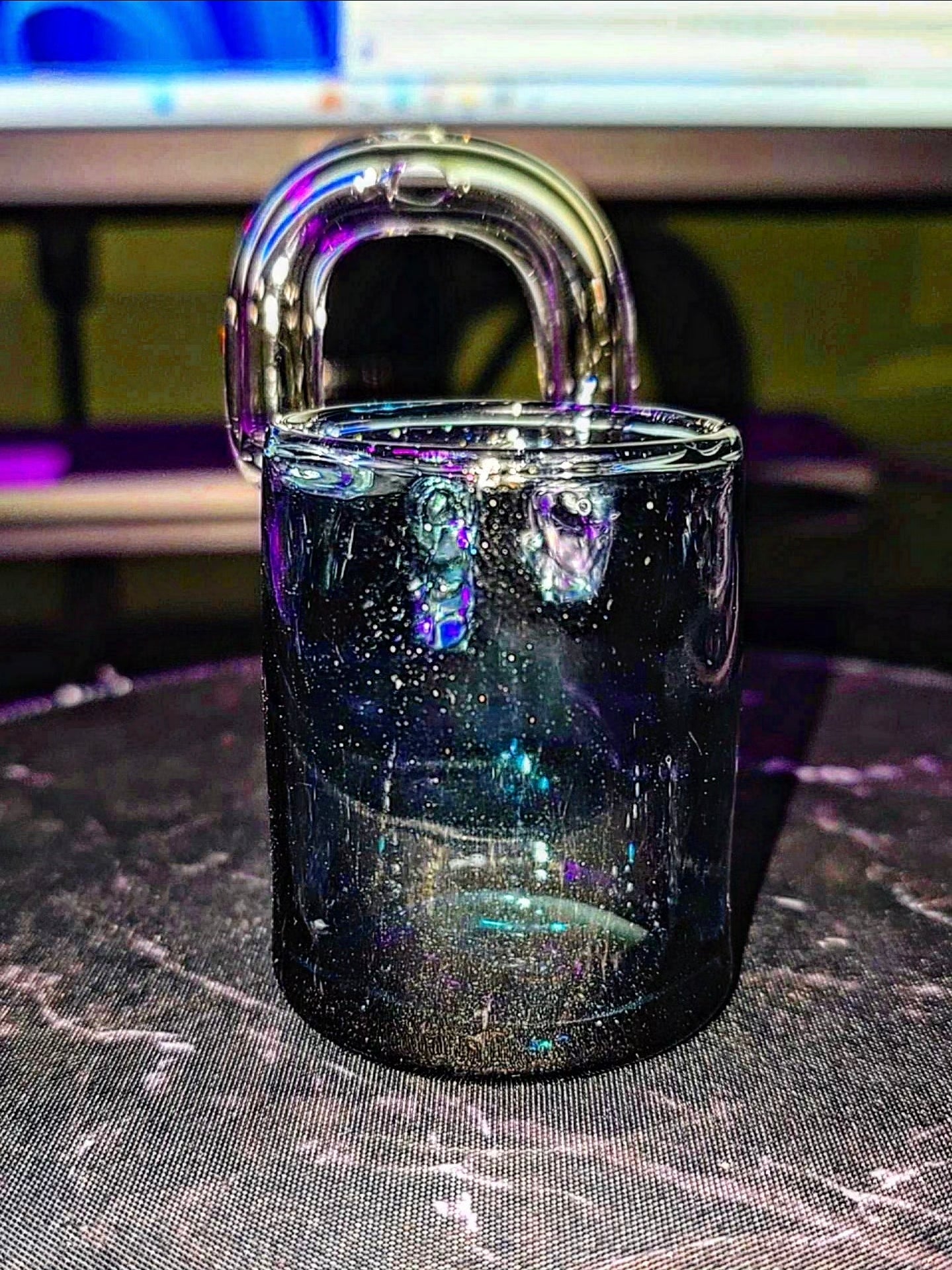 Immerse yourself in the depths of Blue Stardust with this Flat Puffco Proxy Puffer Pendant. Each piece features rich ocean-blue glass fused with micro-shimmering “stardust” flakes that sparkle like stars across the midnight sky. Light play transforms it — from deep sapphire to electric teal accents.